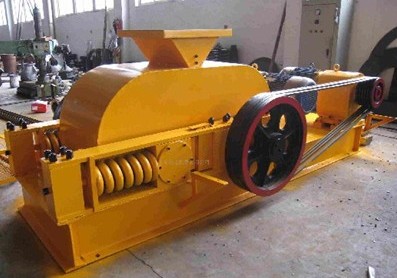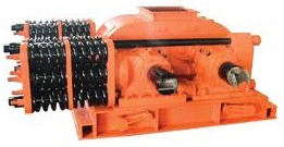 单辊破碎机俗称颚辊破碎机 ,工作时只有辊子旋转 ,料块从加料斗喂入 ,在颚板与辊子之间受到挤压作用 。并受到齿尖的冲击和劈裂作用而粉碎 ,如遇有难碎物掉入 。所产生的作用力就会使弹簧压缩 ,颚板离开辊子而增大出料口 ,使难碎物排出而避免机件的损坏 ,辊子轴上装有沉重的飞轮 ,以平衡破碎机的动载荷 。