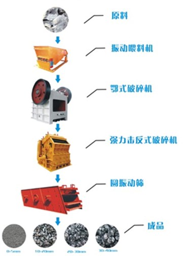 - 破碎机生产线由给料机、颚式破碎机、液压圆锥破碎机、振动筛、立式冲击破碎机等主要设备组成 ,配合皮带输送机等可组成完整的石料生产线 。